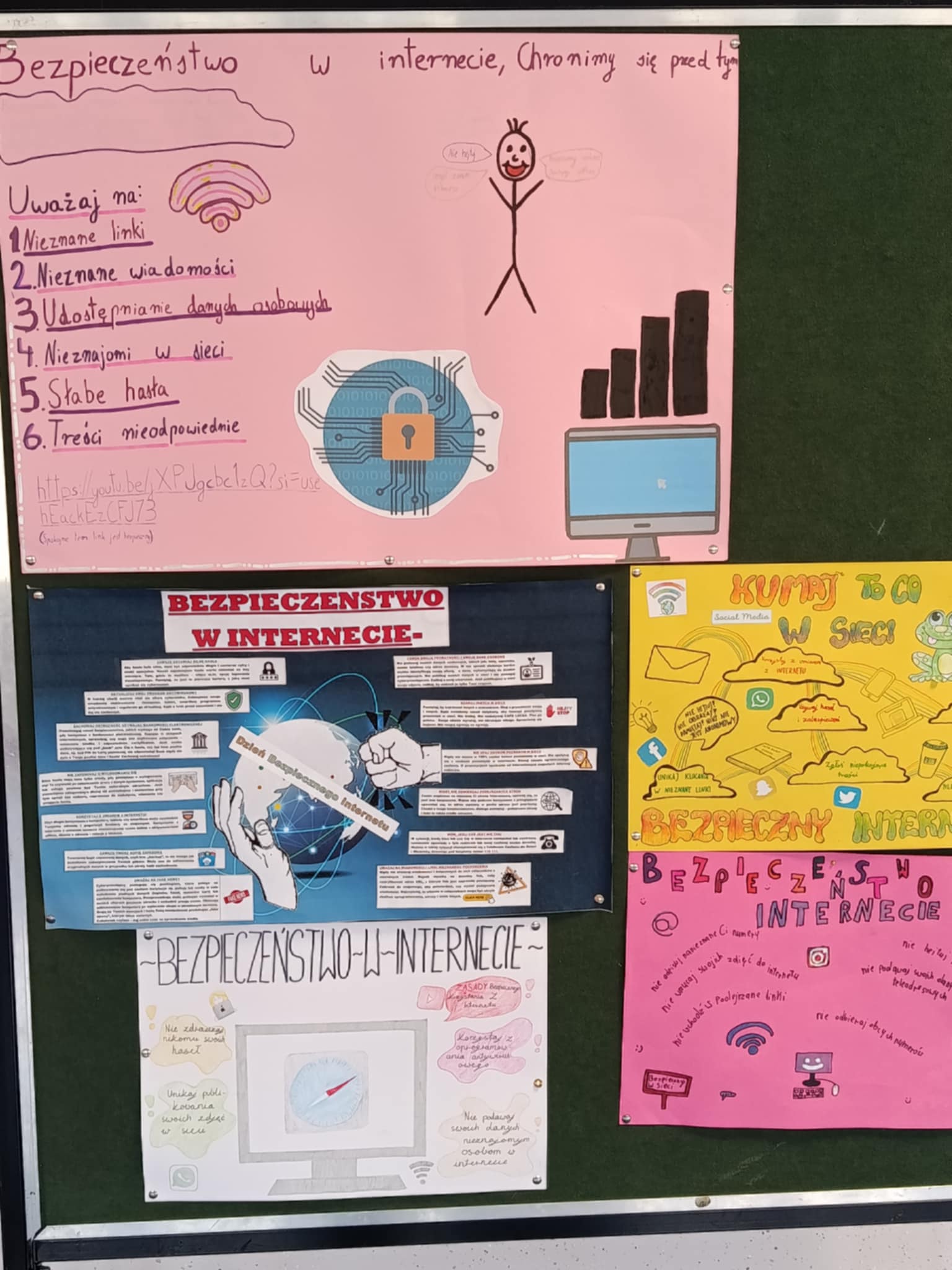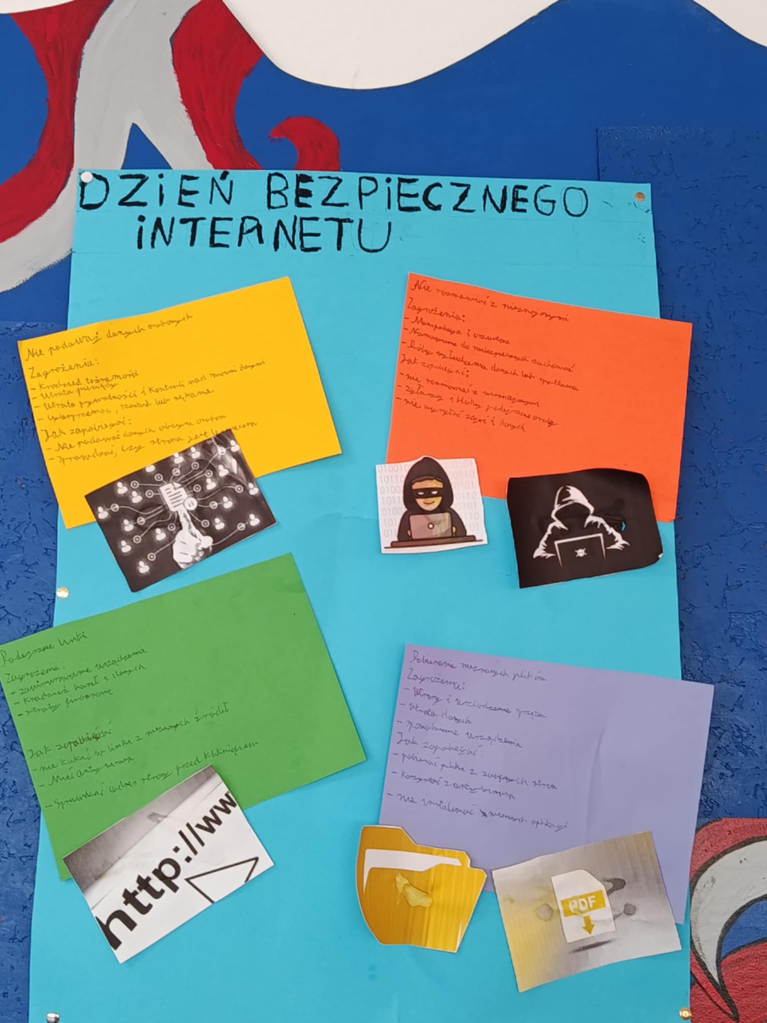 W naszej szkole corocznie włączamy się w obchody Dnia Bezpiecznego Internetu. Na lekcjach informatyki i lekcjach z wychowawcom poruszana jest  tematyka bezpiecznego korzystania z Internetu. Uczniowie i nauczyciele wysłuchali też audycji na ten temat przez szkolny radiowęzeł.