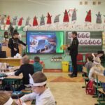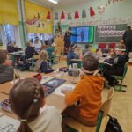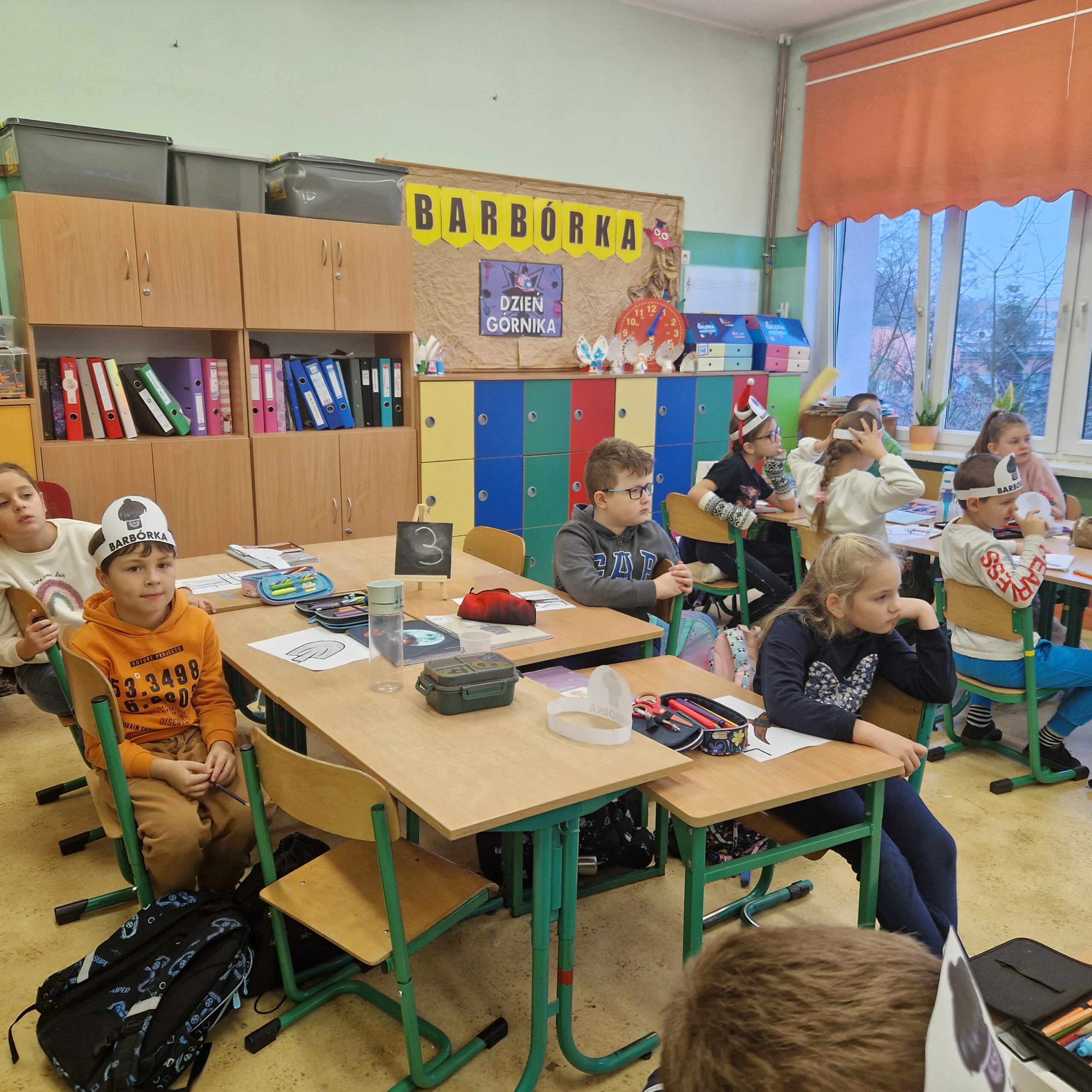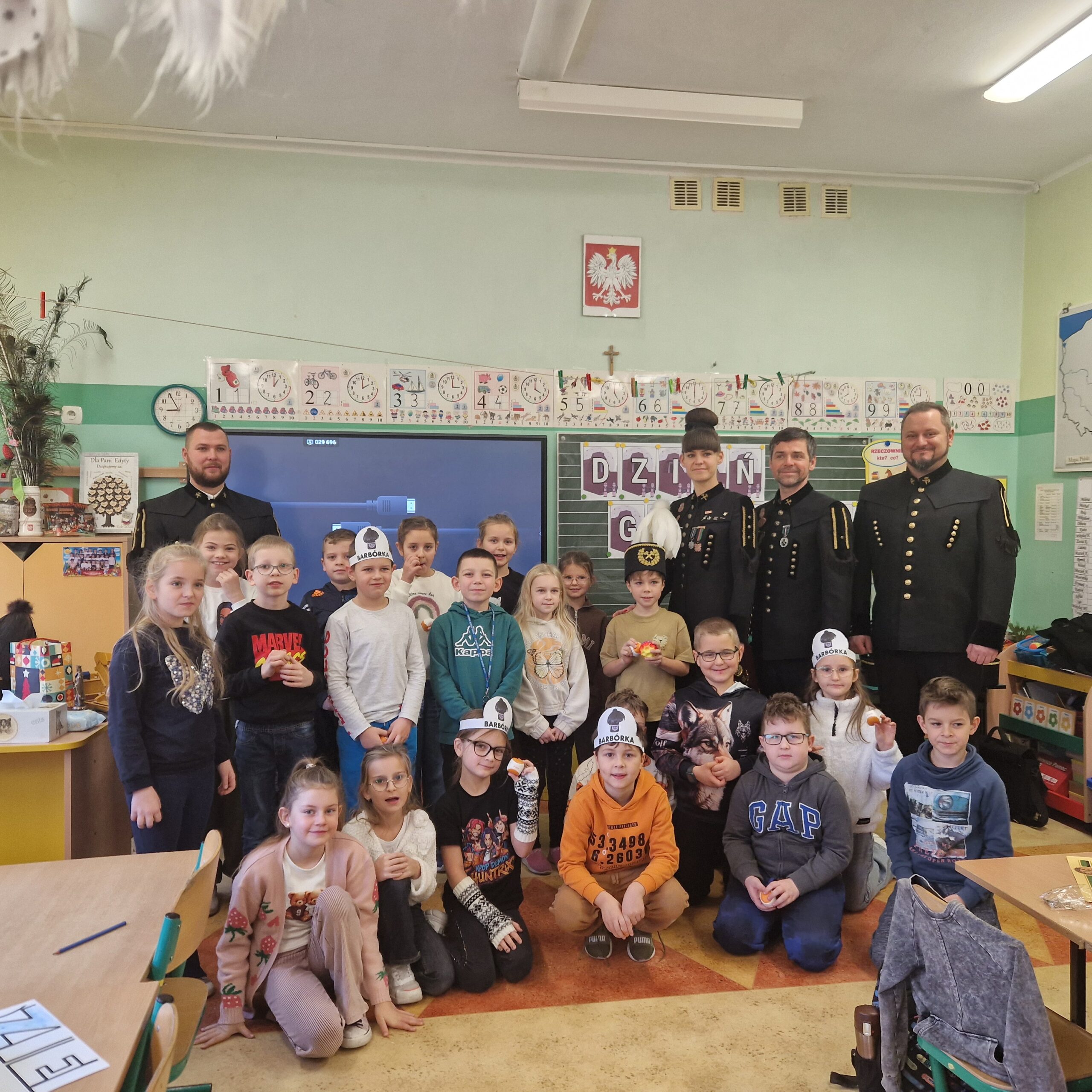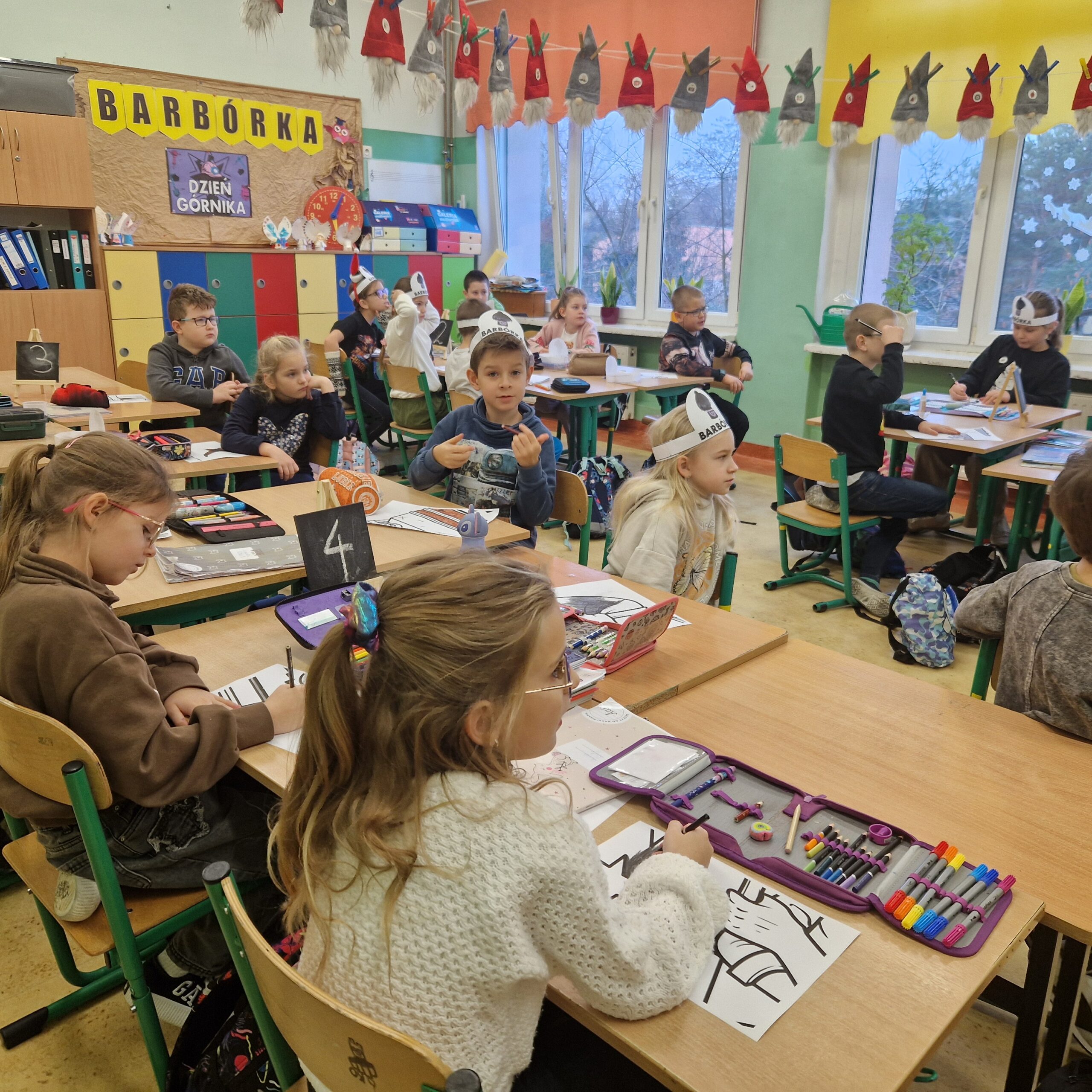 Dnia 04 grudnia klasę II B odwiedzili górnicy, wśród nich byli Państwo Joanna i Bartłomiej Dolmierscy, którzy pracują na co dzień w kopalni. Zaproponowali, że z okazji Dnia Górnika, przeprowadzą dzieciom ciekawą lekcję o naszym regionie a konkretnie o pobliskich kopalniach oraz ich codziennym funkcjonowaniu. Dzieci były zachwycone, przez całą lekcję z uwagą słuchali i oglądali ciekawe filmy o naszych regionalnych kopalniach miedzi. Na koniec fascynującej i ciekawej lekcji, dzieci miały okazję sprawdzić się w skoku przez skórę oraz być PASOWANYM na młodszego górnika, po skoku oraz pasowaniu uczniowie klasy II b, otrzymali DYPLOM MŁODSZEGO GÓRNIKA. Jesteśmy wdzięczni tym rodzicom, za to, że chcieli podzielić się swoją wiedzą na temat codziennej jakże ciężkiej pracy górnika w naszym regionie. Po wizycie rodziców jednego ucznia, postanowiliśmy przez resztę lekcji kontynuować temat w klasie.