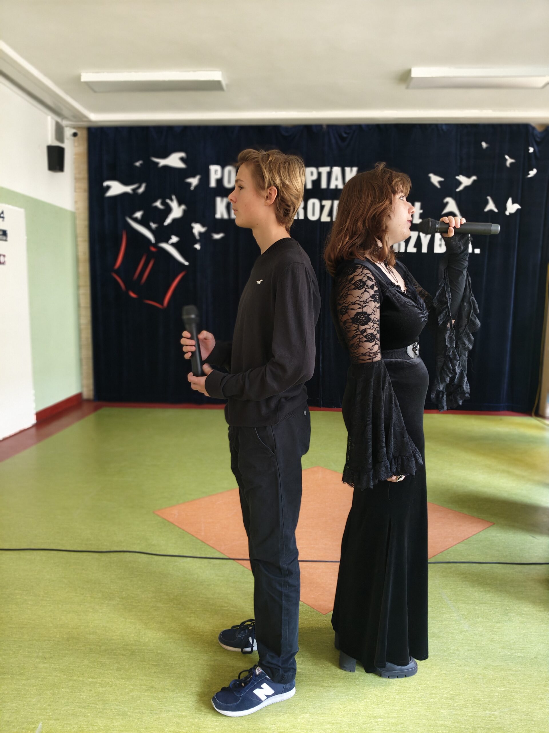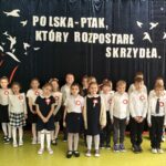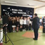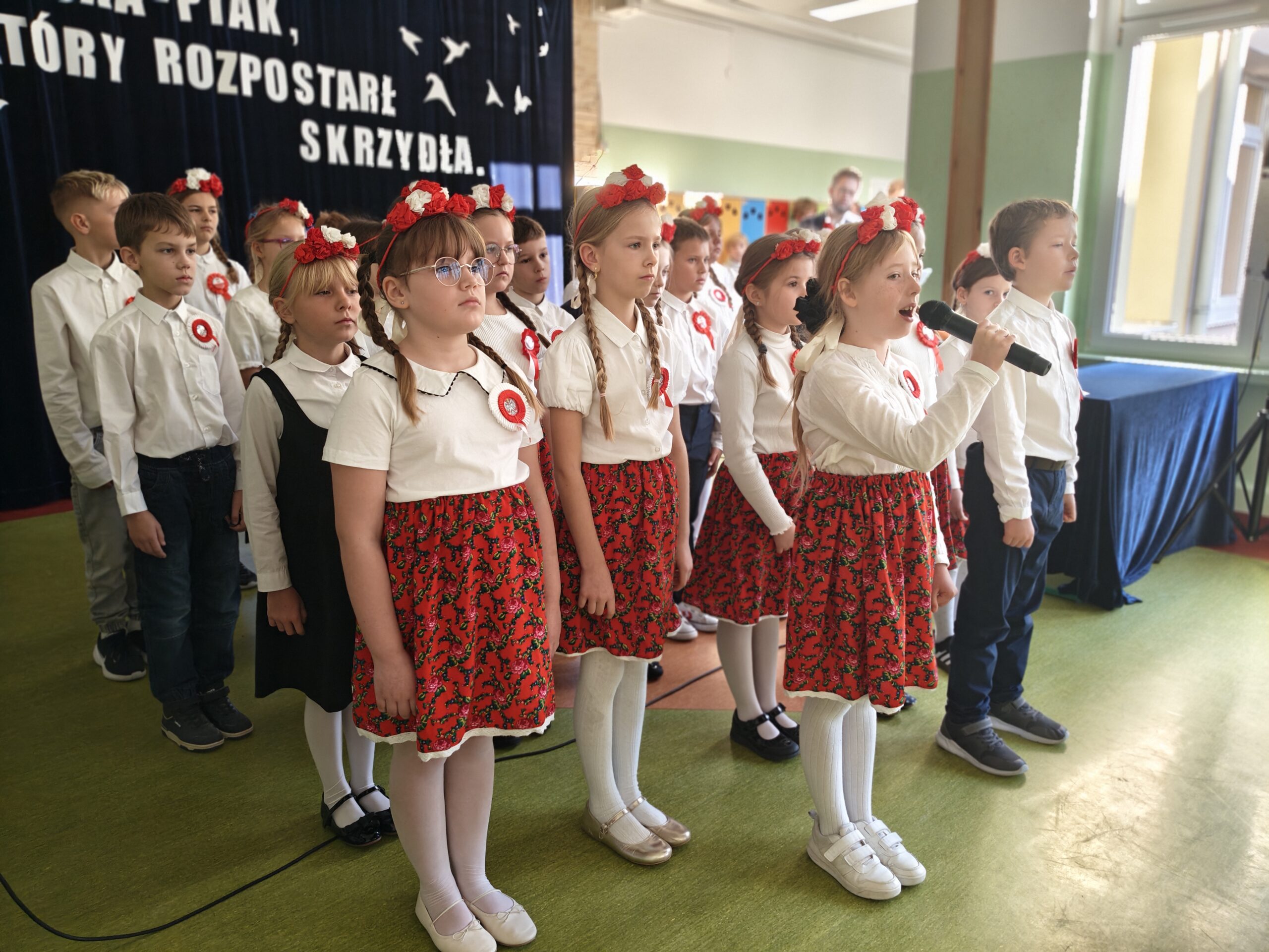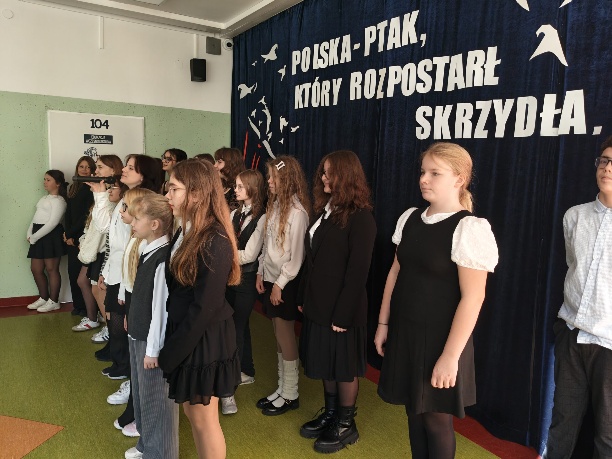 Centralnym punktem uroczystości był wzruszający montaż słowno-muzyczny, przygotowany przez nauczycieli: panią Katarzynę Kobus, panią Ewę Musialik, pana Wojciecha Banacha oraz pana Marcina Szkwarka. Uczniowie, pod czujnym okiem pedagogów, zaprezentowali program, który w sposób artystyczny i emocjonalny oddawał ducha walki o niepodległość. Recytacje wierszy patriotycznych, przeplatane pieśniami wojskowymi, przeniosły wszystkich obecnych w czasie do okresu zmagań o wolność. Szczególne zaangażowanie uczniów, widoczne w każdym detalu występu, świadczyło o ich głębokim zrozumieniu i szacunku dla historii.