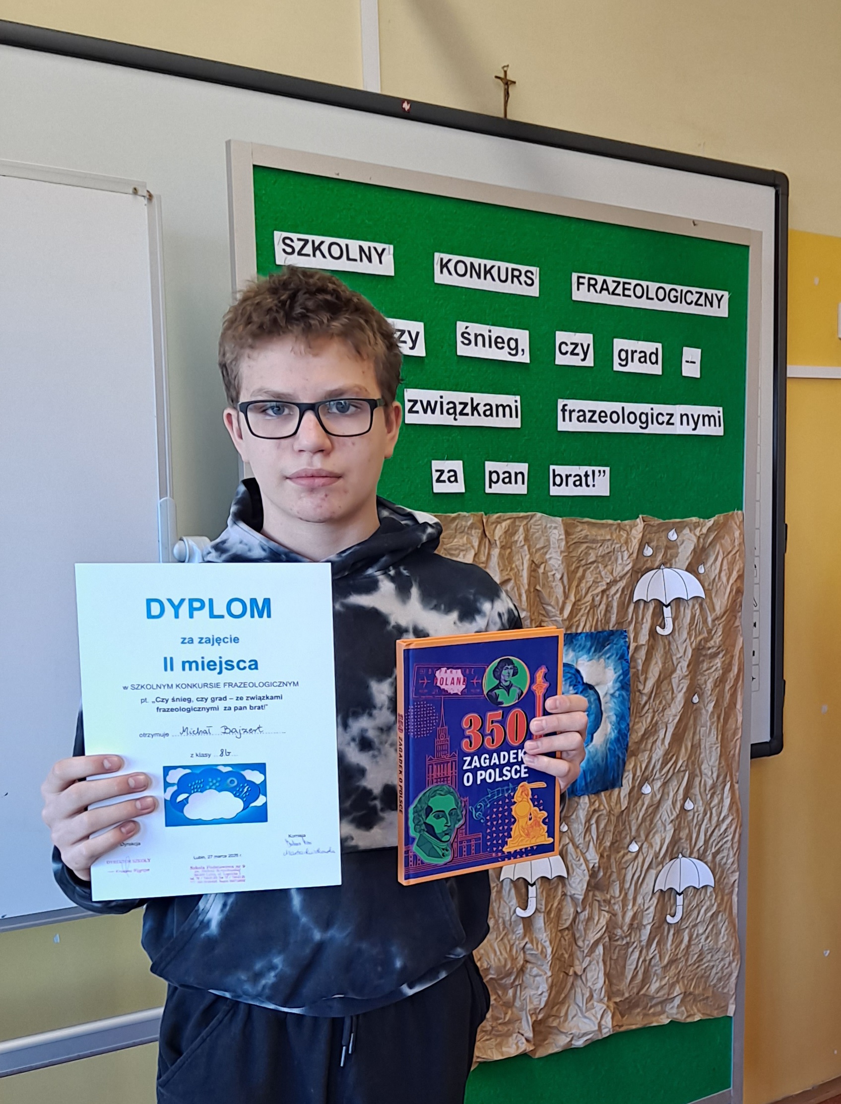 Okazją do sprawdzenia biegłości w rozumieniu i używaniu związków frazeologicznych był szkolny konkurs pt. „Czy śnieg, czy grad – z frazeologizmami za pan brat”. Uczniowie z klas 6, 7 i 8 łamali głowy nad frazeologizmami związanymi: z liczebnikami, z pogodą i porami roku, z domem i jego wyposażeniem.