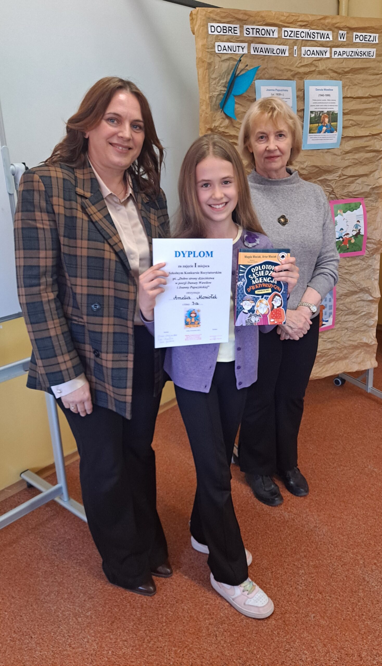 „Dobre strony dzieciństwa w poezji Danuty Wawiłow i Joanny Papuzińskiej” to tytuł tegorocznego konkursu recytatorskiego, który odbył się 24 kwietnia w naszej szkole. Aż 35 osób odważyło się stanąć przed publicznością i pokazać, jak pięknie potrafią recytować. Było dużo emocji i trochę tremy.